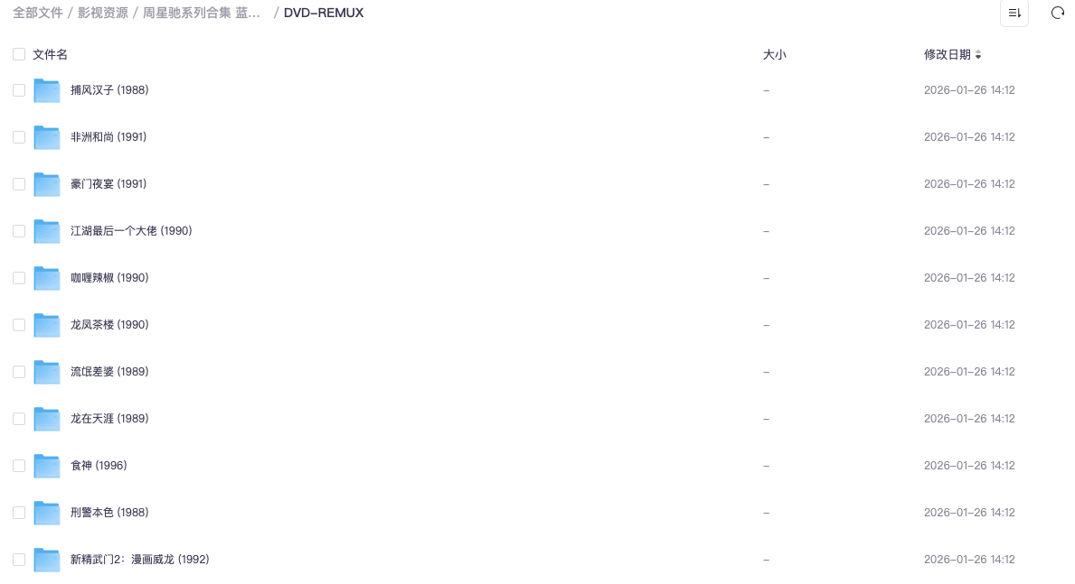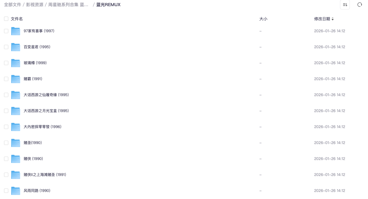 周星驰系列合集 蓝光原盘 REMUX 栏目:影视资源 作者:悦目集 时间:2026-01-26 14:22:44 网盘定期清理,需要赶快下载!链接:https://pan.quark.cn/s/60725703f9ba